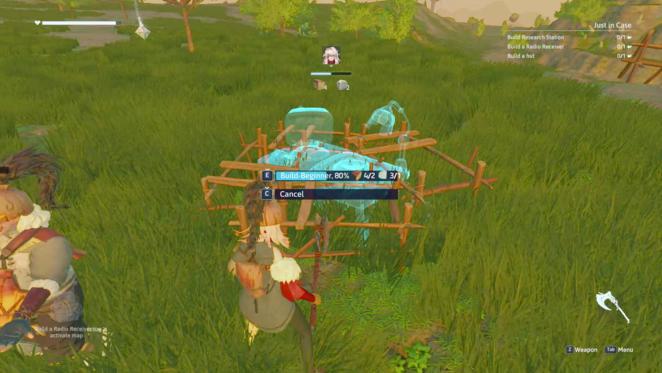 在山丘上接受了建筑任务。需要制作三个“调查站”、“收音机”、“小屋”。从菜单中选择想做的东西,然后设置喜欢的地方。